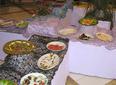 E’ tutto vero. Pranzo e cena, consumati nell’ampio ristorante che sovrasta la piscina, sono un’ode a Lucullo, un sacrificio agli dei, un’orgia di cibo. Frenare l’istinto è impossibile: bisogna assaggiare tutto, annaffiandolo con il vino locale (il rosso, dal bouquet delicatamente fruttato, ha l’inconfondibile retrogusto della coccoina, con piccole reminiscenze di big bouble; il bianco, barriccato in piccole botti di plastica, batte in testa come la benzina a basso contenuto di ottani) gentilmente offerto dalla casa. Ed il timore atavico che i vostri compagni di villeggiatura possano, spinti dall'ingordigia, spazzolare anche uno solo dei piatti disponibili prima che abbiate avuto la possibilità di assaggiarlo, vi spinge a comportarvi come una belva della savana: prendete tutto, anche a costo di ingozzarvi. Dieci minuti dopo l'inizio del pranzo, sui tavoli del buffet sembra che siano passate le cavallette.